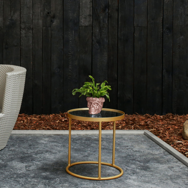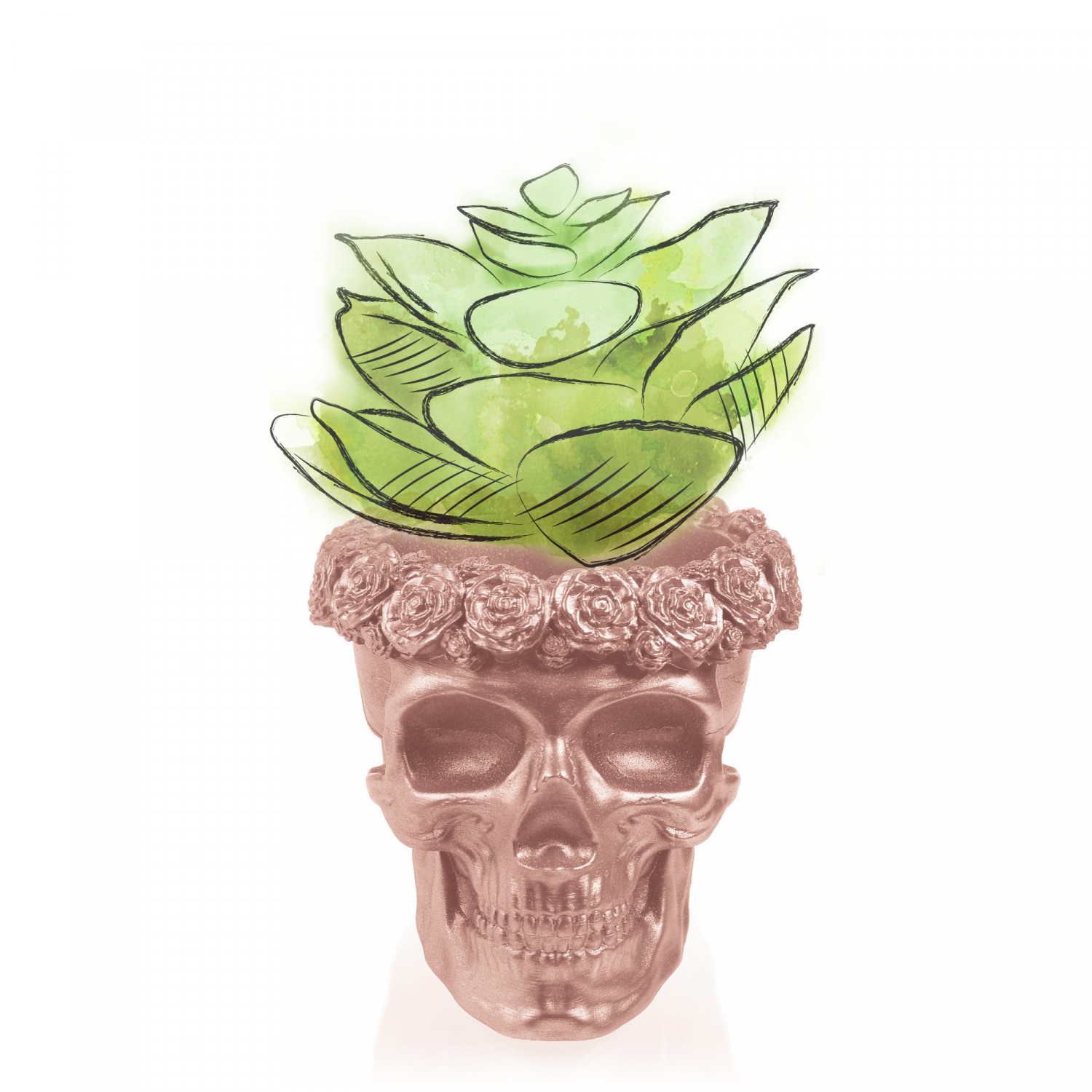 Concrete Flower Pot Skull Flowers Ø9cm Rose Gold