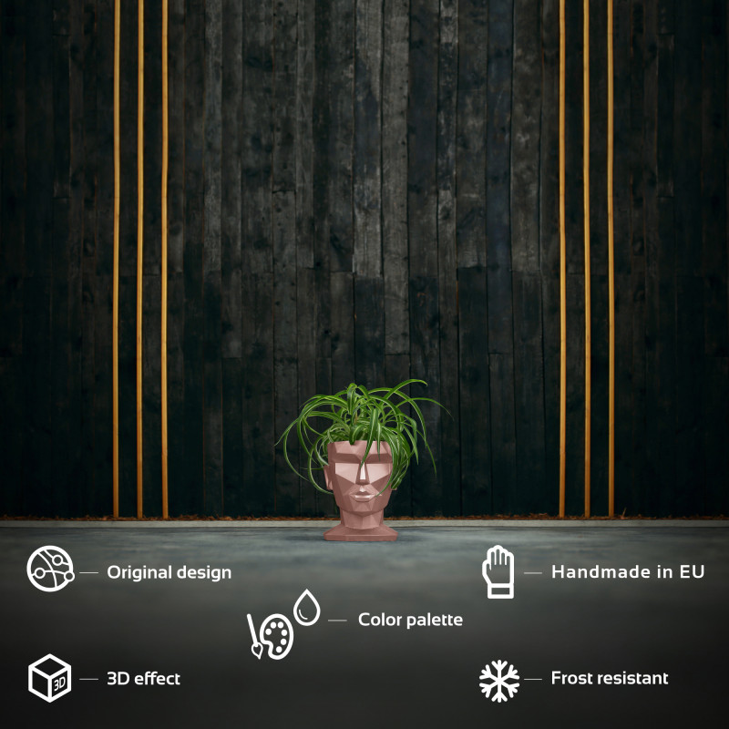 Gorgeous, subtle, breathtaking… Aphrodite. Inspired by the Greek goddess of love and beauty, our plant pot stands out thanks to its subtle, yet unique design. Its one-of-a-kind shape and modern and stylish material it’s made of (decorative concrete) create a piece of applied arts worthy of an art gallery exhibition. Invite Aphrodite in Rose Gold to your house or office and enjoy this extraordinary decoration.