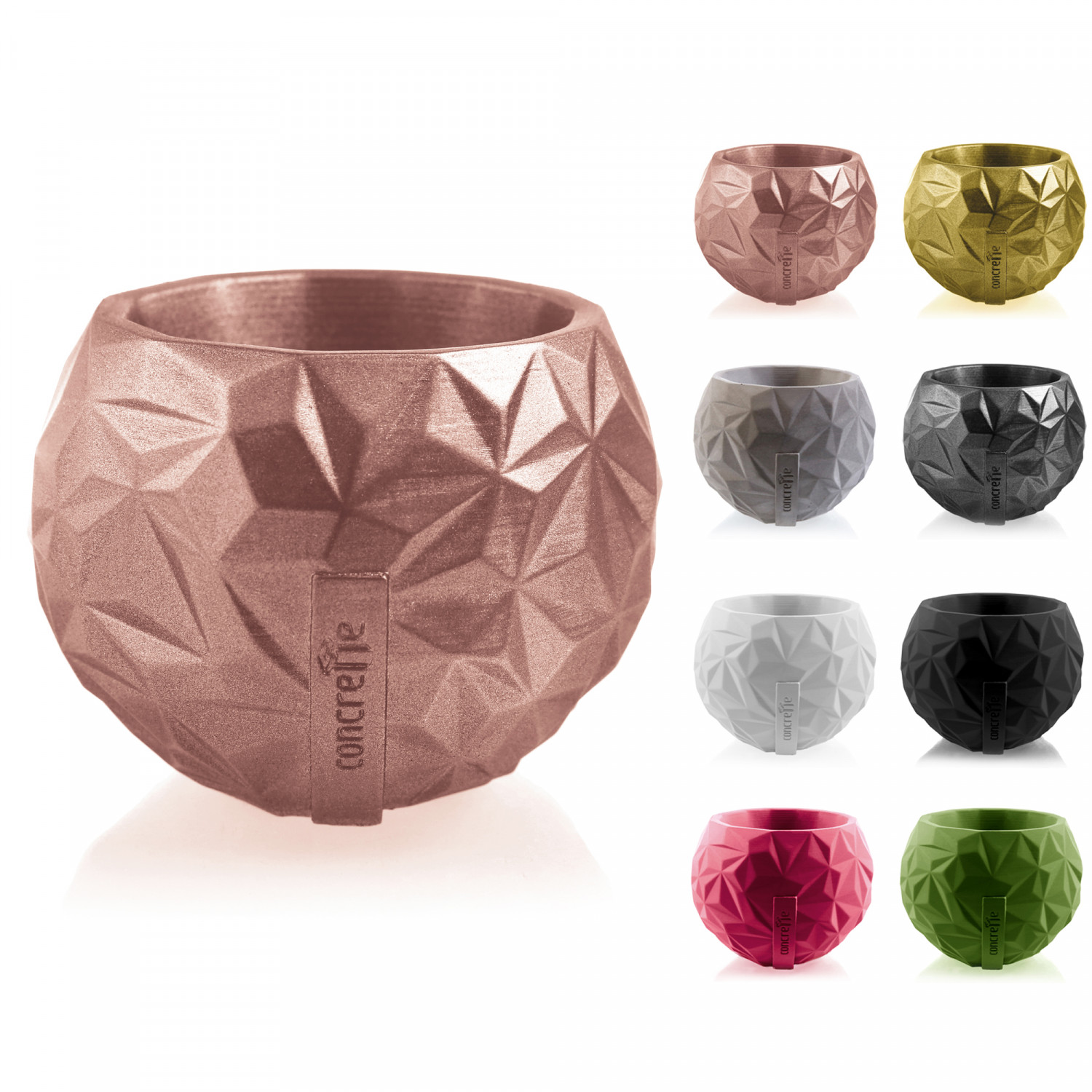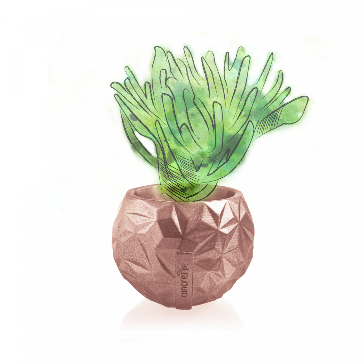 Irregular dents and protrusions on the pot’s surface highlight the features of the material it is made of – decorative concrete. It makes Bauble Geometric raw and durable but at the same time very stylish and subtle. Concrete adds style to your interior, and your Bauble Geometric pot will suit almost every interior design. Rose Gold is only one of the colors you can choose from.
