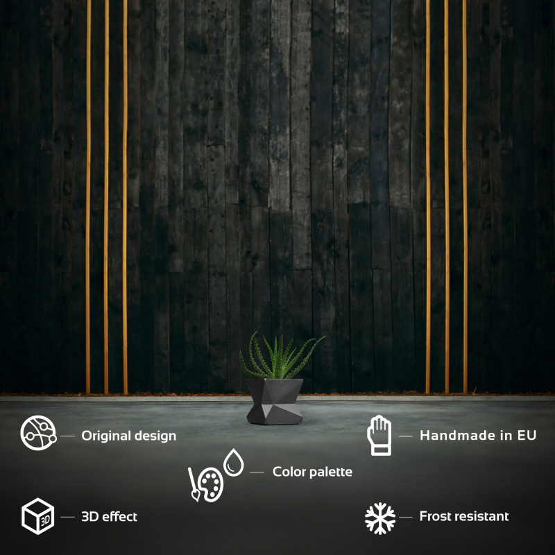 Modern No3 7.5 cm is a unique concrete pot, which certainly does not hint at an obvious, conformist blueprint. Concrette designers have developed a shape that intrigues and delights. It is inspired by origami - the Japanese art of folding paper. This form, full of geometric, symmetrical bends entices you to take keep your eyes on it. Steel finish emphasizes its elegance and complexity and adds another layer of real style.