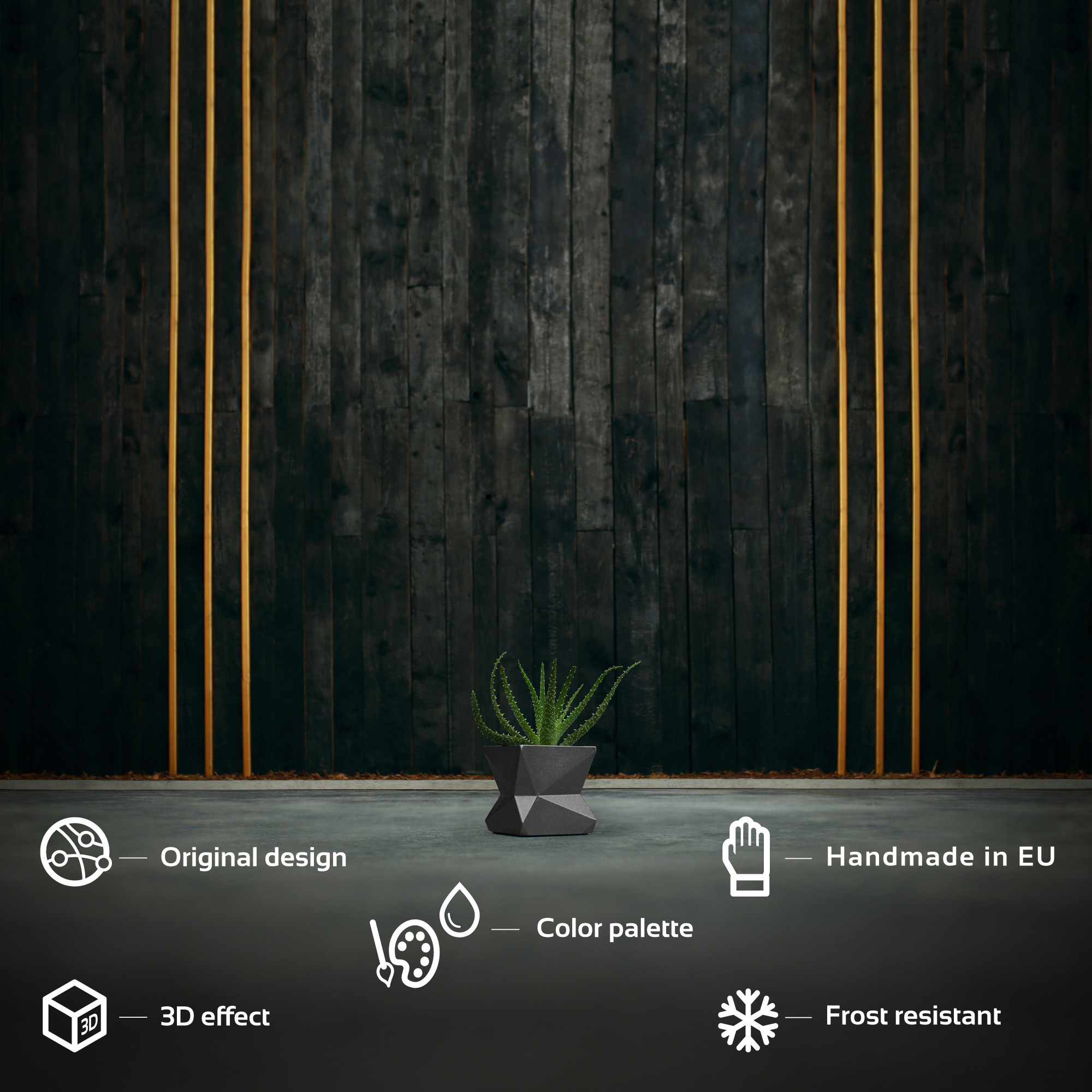 Due to its small size, Modern No3 7.5 cm is the perfect companion for succulents, cacti and other small plants that liven up your interior. Its sharp lines and angles go hand in hand with species that thrive in a dry climate and scorching sun. You can use it as a flowerpot or a casing, as well as repurpose it for other roles - it is all up to you. Tit is made of architectural concrete, which makes it extremely solid and durable.