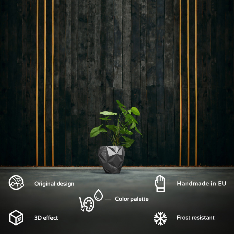 We made Geometric 13 pot of decorative concrete. This material offers various possibilities, which is visible in the unusual shape of this plant pot. The combination of a very interesting material with a unique shape brought about an eye-catching and unforgettable decoration. It is a great choice for your smaller plants. The pot will highlight their beauty and make each of your plants look like a designer decoration.