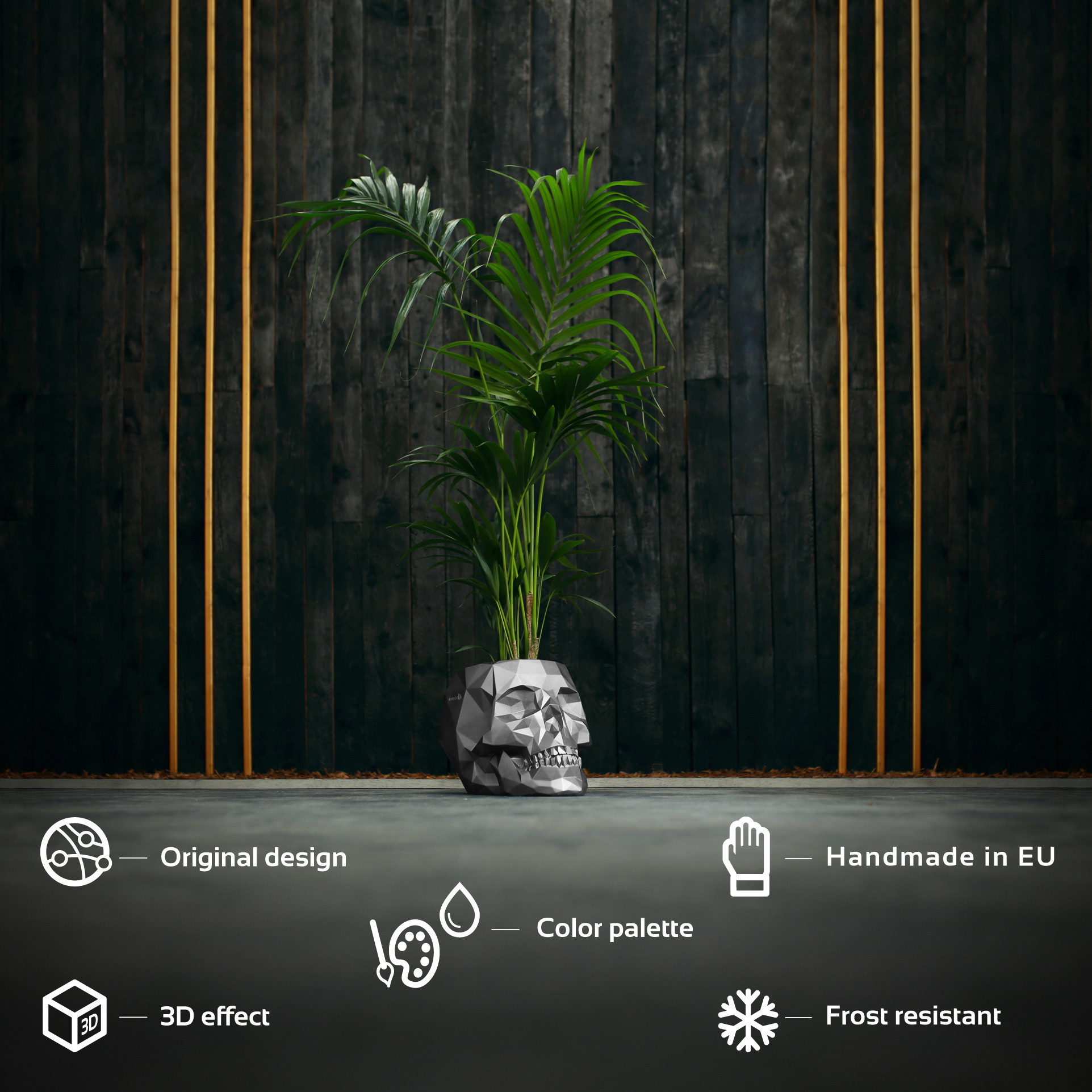 Concrete Flower Pot Skull Low-Poly Ø24cm Steel