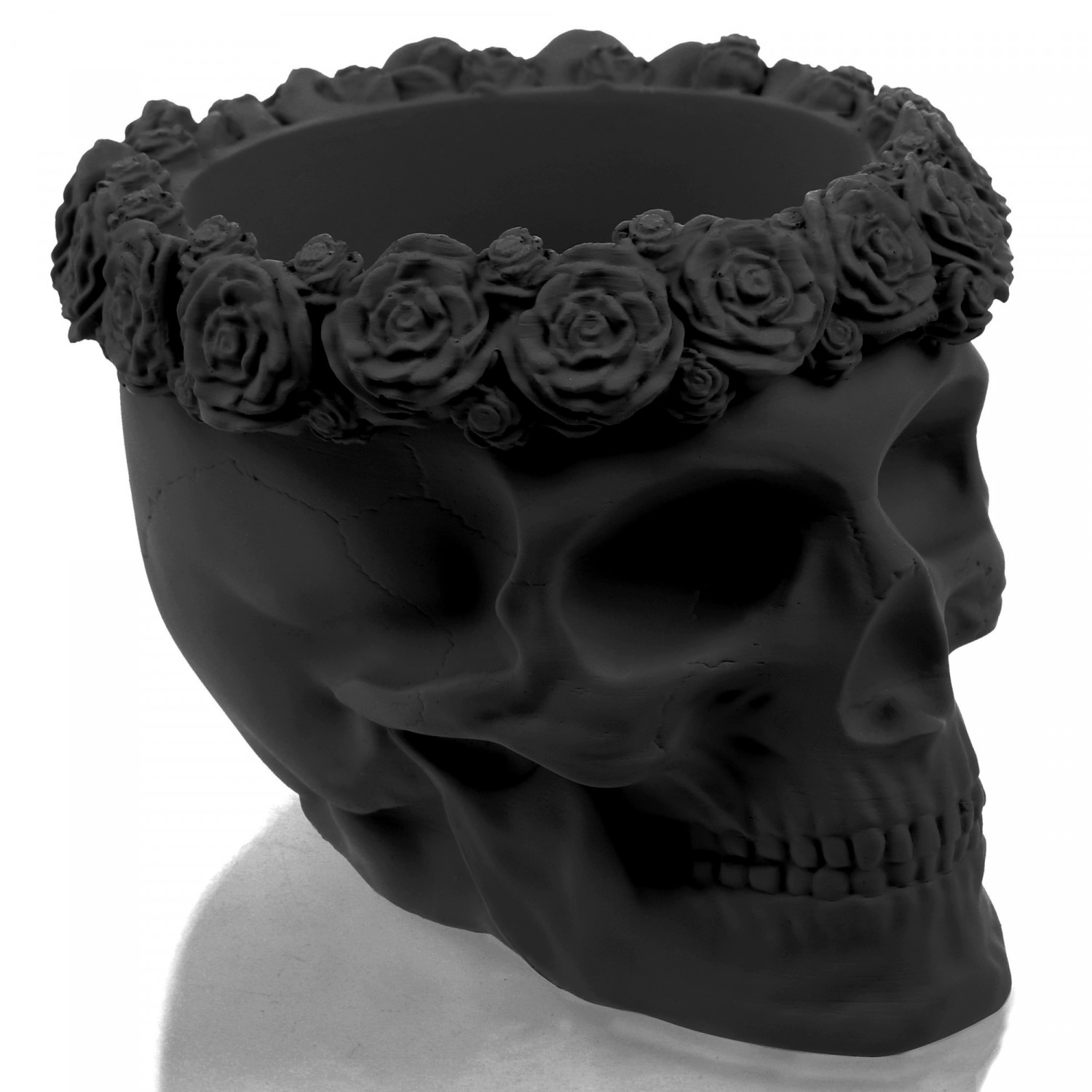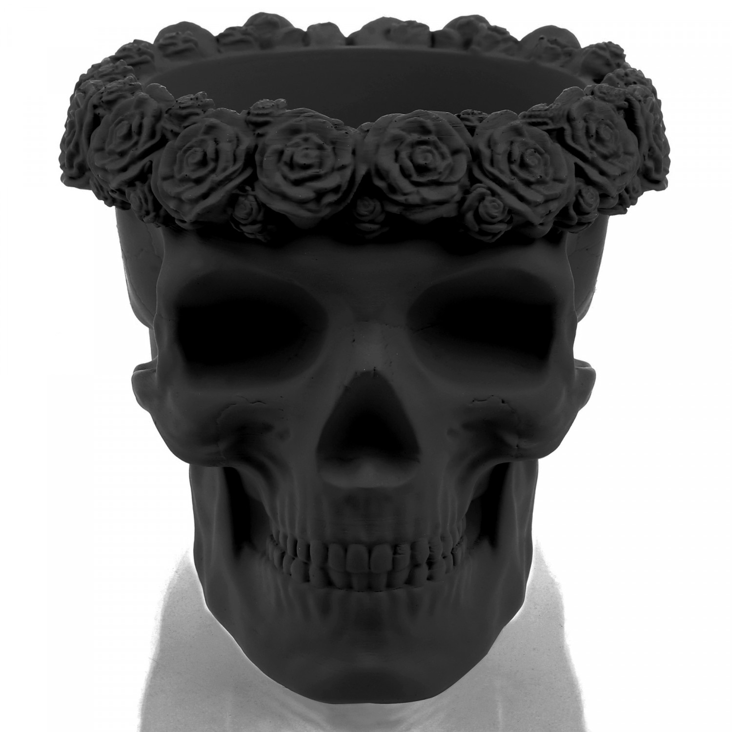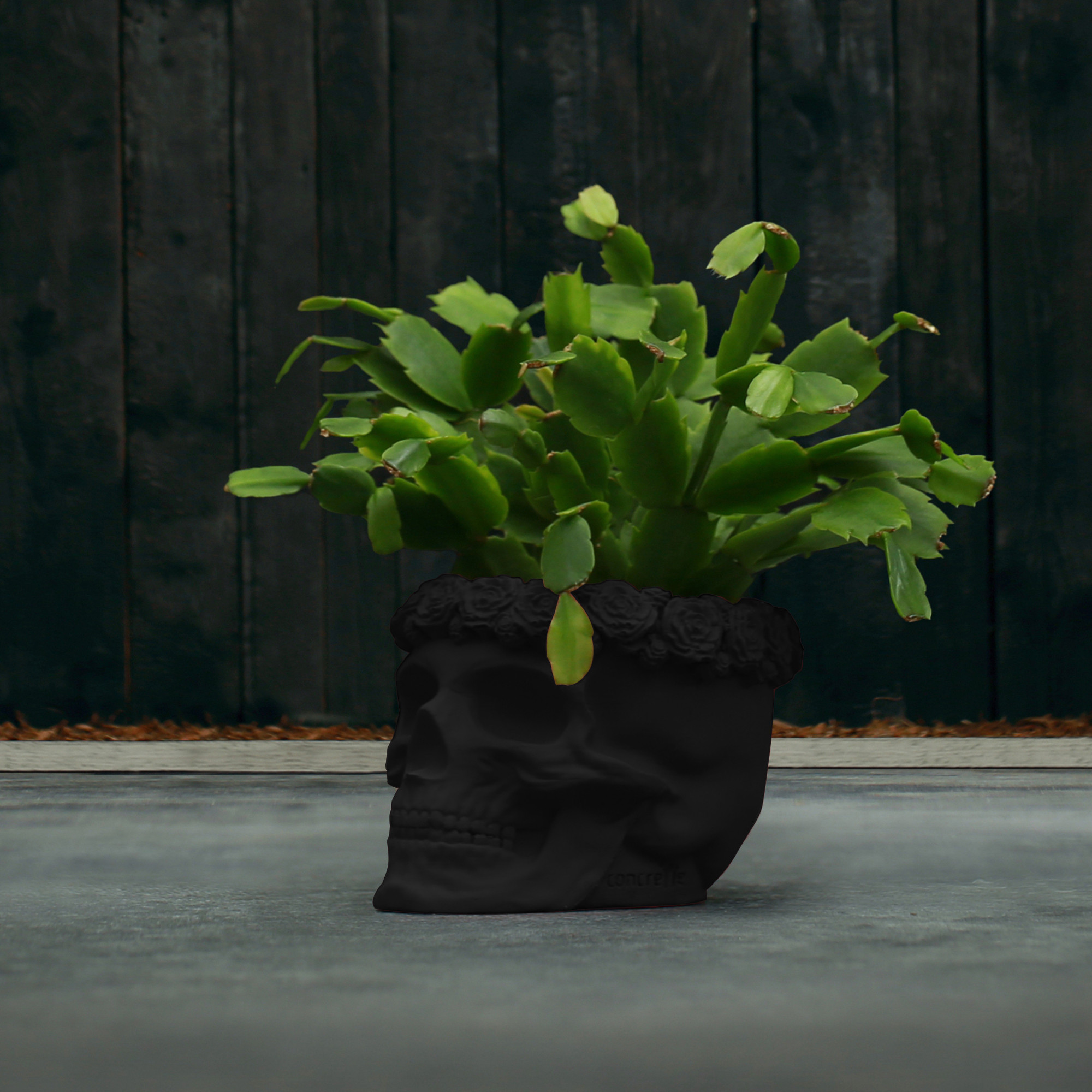 Donica betonowa Skull Flowers Ø9cm Czarny Mat