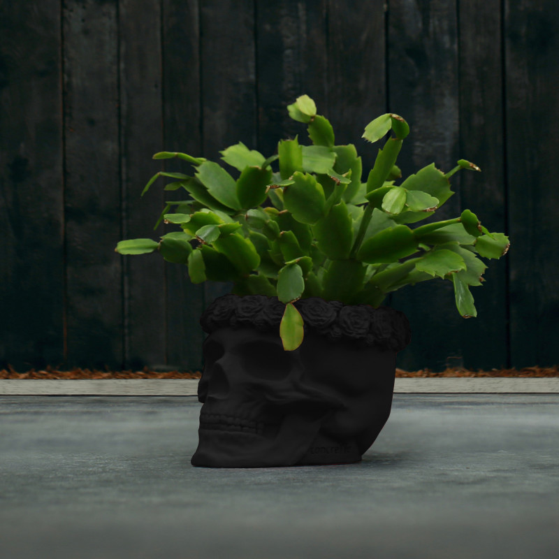 Oto Skull Flowers 9 cm – betonowa donica w nietypowym stylu, która może stać się nowym towarzyszem Twoich ukochanych roślin. Zespół Concrette zafascynowany formą ludzkiej czaszki postanowił stworzyć nieco przewrotny projekt balansujący na granicy makabry i humoru. Jeśli to Twój klimat, Skull Flowers 9 cm na pewno Cię nie zawiedzie!