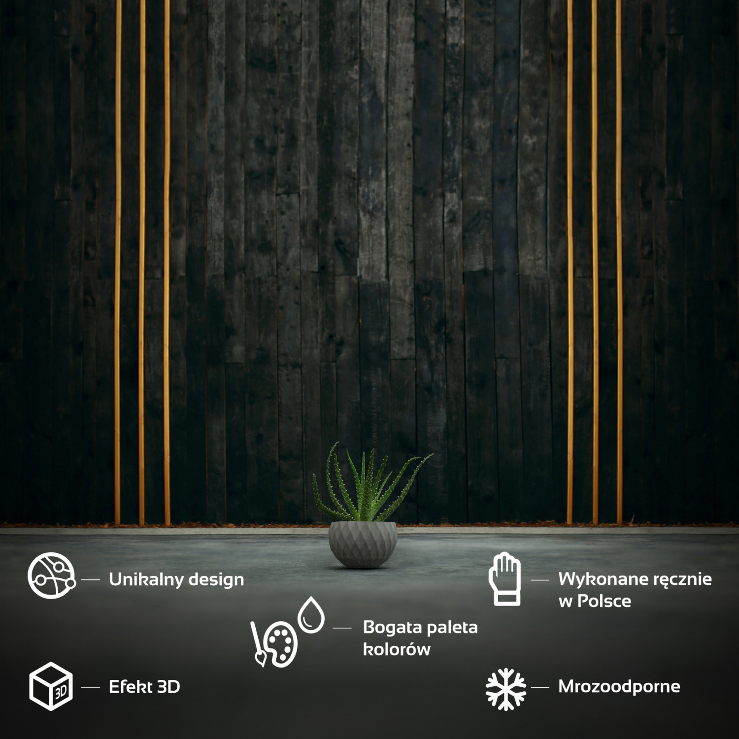 Donica Bauble 7 cm to piękna, geometryczna forma, która intryguje misternym trójwymiarowym wzorem. Jest pełna kontrastów, ponieważ niemal koronkowa, lekka faktura łączy się tutaj z wyjątkowo solidnym materiałem, jakim jest beton architektoniczny. Dzięki temu całość prezentuje się niezwykle oryginalnie i designersko.