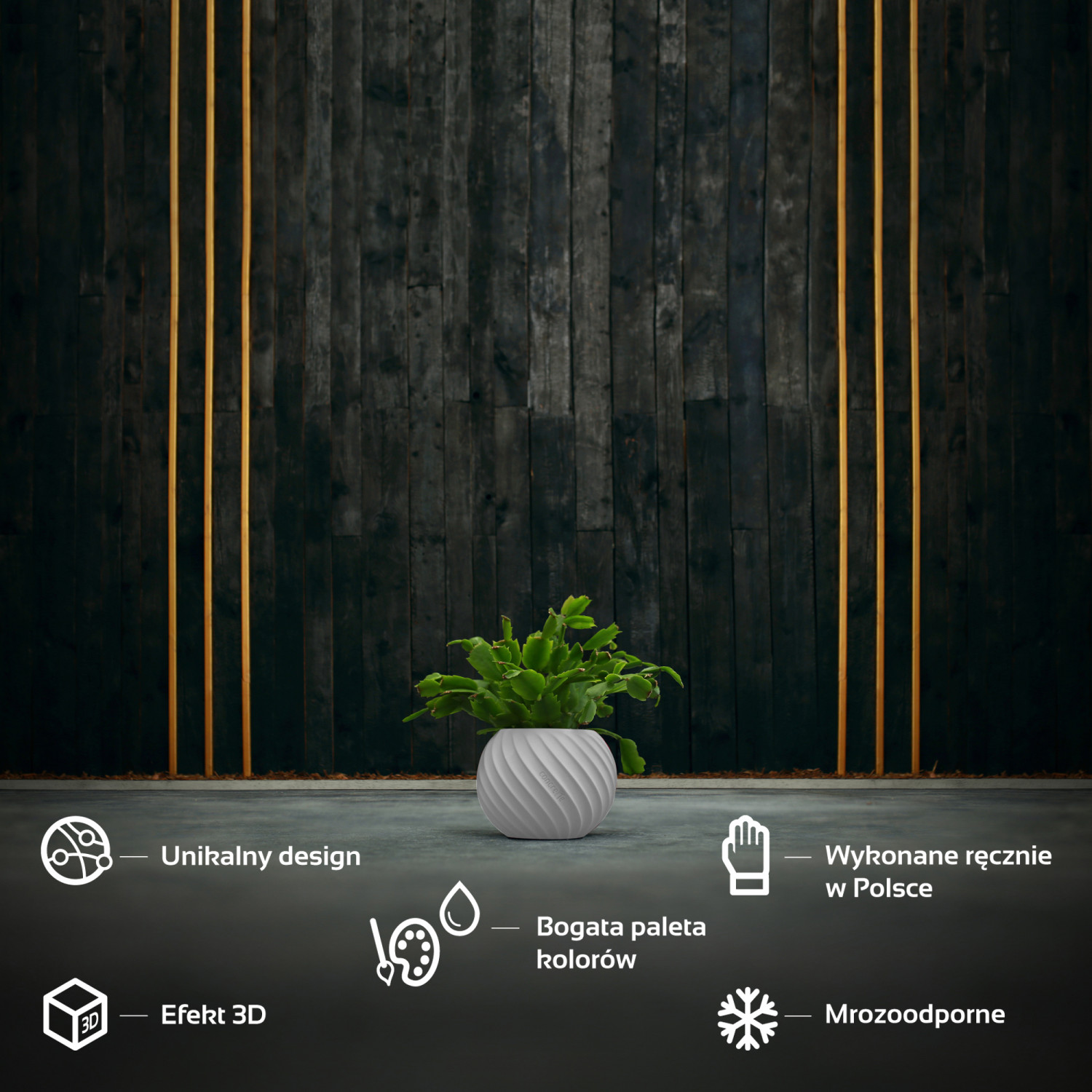Ponętne obłe linie, oryginalna forma i jeden z najmodniejszych aktualnie materiałów architektonicznych. Tak można by opisać Bauble Wave 7,6 cm – jedną z naszych autorskich, oryginalnych donic. To projekt, w którym nie ma miejsca na nudę. Doniczka zachwyca, niezależnie od tego, pod jakim kątem na nią patrzysz.